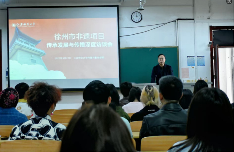 3月23日,徐州市文化广电和旅游局非遗处处长朱泓、副处长邱银波携18位非遗传承人走进传媒与影视学院广告学专业省一流课程《广告业务运作实践》的课堂,与00后大学生展开创意碰撞。传媒与影视学院党委书记杜昀、院长孟宪浦和专业相关老师参加活动。课程主讲人、国家级一流本科广告学专业带头人樊传果教授现场展示了课程创新实践的部分成果并做了《徐州市非物质文化遗产项目调研、传播策划与创意设计》的主题报告,详细介绍了课程中“徐州市非遗项目”业务实践的具体内容。《广告业务运作实践》省级一流课堂上,非遗大师们不再是传统意义上的文化展演者,而是以“创新创业导师”身份深度参与课程设计和实践教学。院长孟宪浦教授对将人才培养、课程建设、社会服务、实践教学等紧密融为一体的教学方式给予高度评价,并指出学院正着力打造以需求为导向的“政产学研”协同育人体系,逐步形成“课程教学+社会服务+课题研究+项目孵化”的产教融合新机制。徐州市文广旅局非遗处朱泓处长高度评价此类教学模式,相信依托国家级一流本科专业的办学优势一定会产生一批有转化应用价值的实践成果。他还表示,非遗处今后也将从各个层面给予大力支持。这场由传媒与影视学院与徐州市文广旅局联合打造的“非遗双师课堂”是贯彻习近平总书记“两个结合”理论特别是“第二个结合”重要思想的呈现。在活动现场,学院领导与非遗处领导就进一步合作进入深入交流。双方表示愿意进一步围绕徐州市非遗保护与传承发展、文化产业品牌建设与传播等项目推进产教深度融合,共建协同育人与非遗传播新平台,助力双方高质量发展。(一审:刘俊冉,二审:孟宪浦,三审:杜昀)