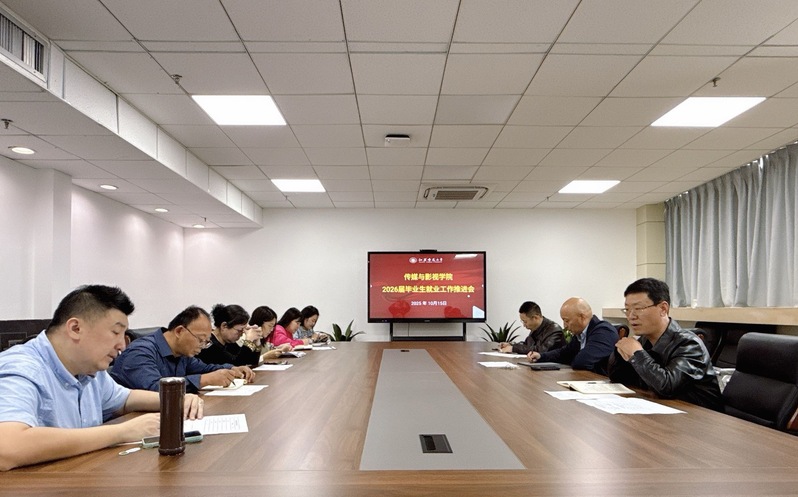 为推进我院2026届毕业生高质量充分就业,10月15日下午,传媒与影视学院在静远楼1702室召开2026届毕业生就业工作推进会。学院相关领导、本科毕业班班主任、研究生导师组组长及就业辅导员参加会议。会议由院党委副书记张存钊主持。会上通报了学院2026届毕业生基本情况,回顾了近期就业工作的开展情况。教学副院长张陈杰部署了毕业生专业实习和毕业论文撰写等工作。他强调,毕业实习是提升学生实践能力的重要环节,必须确保学生有充足时间深入企业一线,积累实际工作经验。院党委副书记张存钊分析了2026届毕业生面临的就业形势和就业相关政策的新变化,传达了学校相关会议精神,部署了访企拓岗专项行动、“职业发展服务月”等相关工作。他要求相关老师要精准掌握毕业生求职意愿和状况,有针对性地分类实施就业指导和帮扶。学院党委书记韩洪政在讲话中要求学院领导和老师们要高度重视,切实扛起促就业的政治责任。要群策群力,扎实推进学院促就业工作的各项部署。要把专业实习和就业落实紧密结合,主动对接用人单位,积极拓展就业资源。要严守就业工作纪律,加强毕业生就业安全教育,营造良好就业氛围。 (一审:张二伟,二审:张存钊,三审:韩洪政)