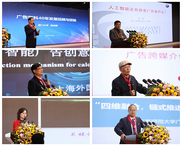 10月28日上午,由中国高等教育学会广告教育专业委员会指导、江苏师范大学传媒与影视学院主办的江苏师范大学广告学专业30周年庆典暨创意创新型人才培养论坛在江苏师范大学云龙校区举办。 江苏师范大学党委常委、副校长商亮,台湾世新大学校长陈清河教授,厦门大学特聘教授、中国广告协会学术委员会原主任、中国广告教育研究会创会会长陈培爱,南京财经大学原副校长、中国高等教育学会广告教育专业委员会副理事长、中国广告协会学术和教育委员会副主任、江苏省广告协会副会长乔均教授,南京师范大学学科建设处处长、全国新闻与传播专业学位研究生教育指导委员会委员张晓锋,上海外国语大学卓越学院执行院长、中国新闻史学会广告与传媒发展史专业委员会副理事长、中国广告协会学术与教育委员会副主任姜智彬教授,中国人民大学新闻学院广告与传媒经济系主任、中国高等教育学会广告教育专业委员会副秘书长、中国广告协会学术与教育委员会副主任王树良教授,江苏师范大学广告学专业创始人阎志强教授出席活动。南京大学、南京师范大学、苏州大学、南京邮电大学等十余位兄弟院校广告学系主任,江苏师范大学相关部门、兄弟学院领导,以及在广告系工作过的教师和200多名校友参加活动。中国高等教育学会广告教育专业委员会、北京大学新闻与传播学院、中国人民大学新闻学院、南京大学新闻传播学院、中国传媒大学广告学院、南京师范大学新闻传播学院、苏州大学传媒学院等十多家单位发来贺信。 8时15分,江苏师范大学广告学专业30周年庆典暨创意创新型人才培养论坛拉开帷幕。首先播放了江苏师范大学广告学专业30周年宣传片《三十而励》。 江苏师范大学党委、副校长商亮代表学校致辞。他首先向出席本次活动的领导、专家和校友表示诚挚的欢迎和崇高的敬意。随后介绍了江苏师范大学基本情况,对广告学专业获得国家级一流本科专业建设点、江苏省首批特色专业、省重点建设专业、省品牌专业等荣誉表示祝贺。商校长指出,媒体深度融合发展日新月异,文化创意产业发展方兴未艾,创意创新型人才培养面临着机遇和挑战,希望本次活动广聚学术资源,广纳真知灼见,广交学术人才,为推动广告学专业未来的发展凝聚力量。 台湾世新大学校长、教授、博士生导师陈清河致辞。他对江苏师范大学广告学专业发展成就表示祝贺,结合世新大学办学情况分享了创新创意人才培养的经验与思考,并寄语新一代的广告人:像种子般不断成长、向下扎根,走出校园,开枝散叶、开花结果,为广告产业的共同发展服务。 厦门大学特聘教授、博士生导师、中国广告协会学术委员会原主任陈培爱代表广告教育界致辞。他充分肯定了江苏师范大学广告学专业取得的丰硕成果,并结合个人学术研究和专业教学经历,阐述中国广告学专业和广告事业40年的发展历程和未来发展态势,并热情勉励广大师生为广告专业、产业发展和中国品牌走向世界贡献广告人的智慧和力量。 南京班正建设有限公司总经理、99级广告班班长赵平代表广告学专业校友致辞。他对广告学专业30周年庆典致以诚挚的祝贺,分享自己在师大求学成长的故事,追忆师生情谊。他指出,广告人拥有敏锐的洞察力,无限的创造力以及适应潮流、引领潮流的信心和能力,希望广告学专业进一步强化产学研融合,提高人才培养质量。 国家级一流广告学专业负责人、江苏师范大学文化创意产业研究院院长、传媒与影视学院樊传果教授代表广告学专业教师致辞。他回顾了广告学30年来的发展变迁,并感恩社会各界与各级领导、师生的关心、支持,期待各界朋友继续关注广告学专业的建设与发展,期待广大校友常回家看看,期待广告学专业学子赓续优良传统,不忘初心、砥砺前行。 江苏师范大学传媒与影视学院党委书记赵永前主持开幕式,并代表学院致欢迎词。 校教育基金会、校友会主任顾振中向为此次庆典活动捐款捐物的校友赵平、俞小惠、李伟、柳太江、范懿铭、周晓曼、张树娟、王弢颁发了捐赠证书。 开幕式结束后,举行了“创意创新型人才培养”主题论坛。28日上午的分论坛上、下半场分别由江苏师范大学传媒与影视学院院长孟宪浦、副院长何靖主持,陈培爱、乔均、陈刚、金星、姜智彬、王树良、赵岚、樊传果八位专家分别做了主题演讲,陈刚、金星线上参会,张晓锋、陈培爱分别担任上、下半场点评专家。演讲嘉宾围绕广告学高等教育四十年发展的艰辛历程展开论述,总结了广告学专业和广告产业在数字化浪潮中遇到的新境遇、新问题、新挑战,探索新时代拔尖创新人才培养、广告学专业改革创新、产学研创融合、学科融合等话题。 “校友主旨演讲”分论坛共两场,分别由江苏师范大学传媒与影视学院广告系系主任傅蓉,广告系党支部书记刘俊冉主持,李伟、俞小惠、范懿铭、邱淼、韦旭、胡姗姗、方蒙、刘练、李玉洁、陈旦、徐天舒、徐周、周昊瑀等13名优秀校友,结合自己大学学习、工作经历,生动讲述了数字传播时代有关品牌营销传播策划、广告创意设计、智能传播、智能广告、大数据技术运用等方面专题。 庆典活动期间,江苏师范大学传媒与影视学院党委书记赵永前、院长孟宪浦分别向部分校友颁发了“优秀校友”荣誉证书和创新创业导师、广告系兼