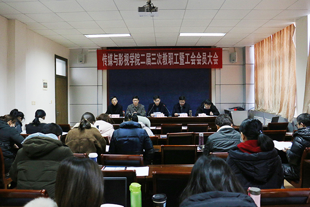 1月22日,传媒与影视学院二届三次教职工暨工会会员大会在学院304会议室召开。学院领导班子成员、全体教职工参加会议。 上午8:30,大会在庄严的国歌声中正式开幕。 院党委书记赵永前致开幕词。他指出,五年来,传媒与影视学院全体师生团结奋进、改革创新,不断提高办学质量、强化自身特色、全面深化改革、加快内涵发展,办学层次不断提升、办学能力不断增强,知名度、美誉度稳步提升。他强调,本次大会是在深入学习贯彻党的二十大精神,落实校第三次党代会各项部署,深入推进“十四五”发展规划实施关键节点召开的一次重要会议。希望与会同志认真履职尽责,积极建言献策,把本次会议开成凝心聚力、共谋发展、求真务实、催人奋进的大会。 院长孟宪浦代表学院向大会作了题为《增强信心 砥砺奋进 扎实推进学院事业高质量发展》的工作报告。报告首先从履行党建主体责任、强化师资队伍建设、提升人才培养质量、推进学科科研工作、做好学生教育管理、增强发展资源保障六个方面回顾了过去5年学院事业发展取得的成绩,客观分析了学院发展过程中存在的问题和不足,进一步明确了接下来一个时期学院发展方向,并具体布置了2024年学院的总体工作思路和重点工作任务。2024年学院工作的总体思路是:以习近平新时代中国特色社会主义思想和党的二十大精神为指导,深入贯彻全国教育工作会议精神,全面落实校第三次党代会战略部署,紧紧围绕立德树人根本任务,以高标准通过教育部本科教育教学审核评估为工作主线,以党建为引领,以激发教育教学创新活力为中心,强化社会服务和资源保障为支撑,统一思想、增强信心、砥砺奋进、真抓实干,推进专业优化升级和学位点建设,强化有组织科研,深化产教融合,全面提升人才培养质量,扎实推进学院事业高质量发展。 院党委副书记张存钊、副院长李忠分别就年度财务工作和年度工会工作向大会作了报告。 随后,与会人员分组审议院长工作报告、财务工作报告、工会工作报告,讨论学院年度工作量计算及酬金发放实施办法,酝酿学院第三届工会委员会委员人选。 下午14:00,进行大会选举、表决。副院长何靖宣读大会选举办法,经大会选举,产生学院第三届工会委员会委员。经过审议,全体教职工一致同意院长工作报告、财务工作报告、工会工作报告,表决通过学院年度工作量计算及酬金发放实施办法。 院领导班子成员结合分管领域布置寒假及下学期重点工作。 赵永前作总结发言,向大会的顺利召开表示祝贺,向大会工作人员表示感谢。他强调,今后几年,是我国全面建设社会主义现代化国家开局起步和加快建设教育强国、科技强国、人才强国的关键期,是高等教育内涵式发展的深化期,是学校全面推进高水平大学建设的攻坚期,也是学院高质量发展的关键节点。希望学院全体师生增强信心、砥砺奋进,进一步同心同德、敢试敢闯,扎实推进学院事业高质量发展,为学校高水平大学建设贡献传媒力量。 在顺利完成各项议程和预定任务后,传媒与影视学院二届三次教职工暨工会会员大会顺利闭幕。