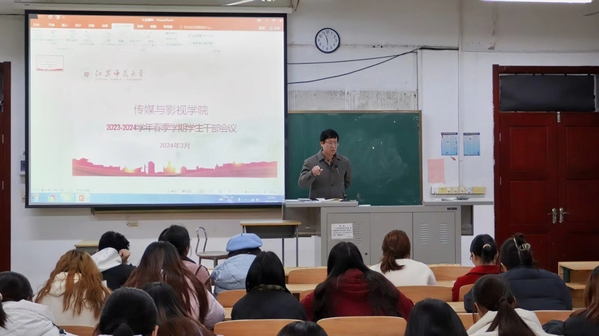 为全面加强学生骨干的思想政治教育,引导学生干部明确工作重点和方向,提高工作能力和服务水平,确保本学期各项工作的顺利进行,传媒与影视学院于3月8日召开了2023-2024学年春季学期学生干部会议。传媒与影视学院党委副书记张存钊、辅导员出席会议,各学生组织骨干参加会议。 党委副书记张存钊为进一步完善学生管理机制,压实做细学生网格,切实提升管理效能,结合我院实际,对《关于进一步加强和规范本科生日常网格化管理工作的通知》进行解读,鼓励学生干部增强责任意识、培育担当精神,全体学生干部要发挥好榜样作用,率先垂范,敢于担当,想在前面,做在前面,做到早规划、早行动。张存钊聚焦意识形态及网络安全教育等热点事件,提出要把意识形态工作放在极端重要位置,要求学生干部创新宣传思想工作的方式方法,特别是要加大对网络空间的正面引导力度,用社会主义核心价值观占领网络文化阵地,充分认识维护政治稳定和校园安全稳定的重要性和艰巨性。张存钊指出我院学风建设目前存在的主要问题,以实际案例为切入点,结合学风建设相关纪律对同学们的课堂纪律、考试纪律、自习纪律等提出了明确要求,强化思想认识,以主人翁的姿态自觉维护学院的良好声誉。 辅导员周荃老师、夏浩老师、郭凤娇老师分别结合自己负责工作给学生干部提出进一步要求,希望学生干部起到带头作用,共商共谋理顺工作,积极创建校园文化品牌建设,保持积极心态,为做好新学期各项工作贡献力量。