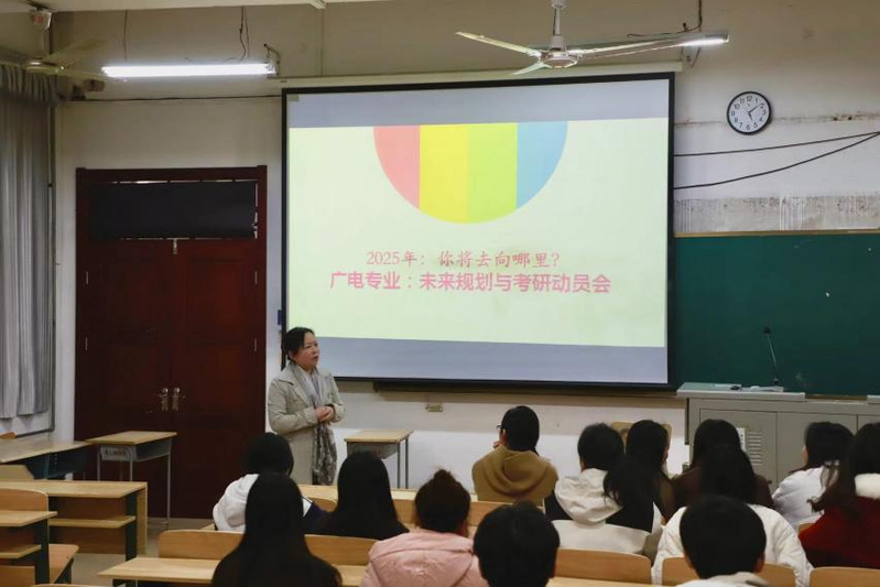 3月20日,传媒与影视学院在5号楼105教室召开2021级考研动员暨经验交流大会。大会由学院党委副书记张存钊主持,院长孟宪浦教授作动员报告。学院辅导员郭凤娇和2021级全体本科生参加了大会。孟宪浦院长从“立高志、立长志、立实志”三个方面对2021级学生进行了考研动员。第一,要“立高志”。目前就业形势严峻,市场对学历的要求变高。孟宪浦用自己的亲身经历和经验告诉同学们提升学历层次的重要性和必要性,要将目光和目标放长远。第二,要“立长志”。从大一起就立下长远目标,并能够持之以恒、不畏困难地去实现,考研不仅是一场学识的考验,更是意志品质的比拼。第三,要“立实志”。学会结合自身实际情况,制定合理的人生目标。脚踏实地,切勿好高骛远。接着,学院研究生潘露露、姜娇梦、陈晨分别结合自身的考研经历与大家进行了交流。他们分别从制定合理学习计划、如何选择合理的目标院校和专业、学会信息检索和筛选等方面进行了具体的经验分享。最后,广播电视学专业陈红梅教授为21传91班学生进行了有针对性的考研专业辅导。本次考研动员暨经验交流会的召开,不仅帮助同学们认清当前就业与考研形势、辨明前进方向、规划未来人生,而且鼓励同学们奋勇向前、努力考研、提升自我,更加明确了他们的考研目标和方向。