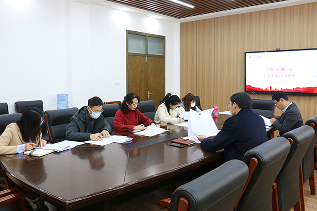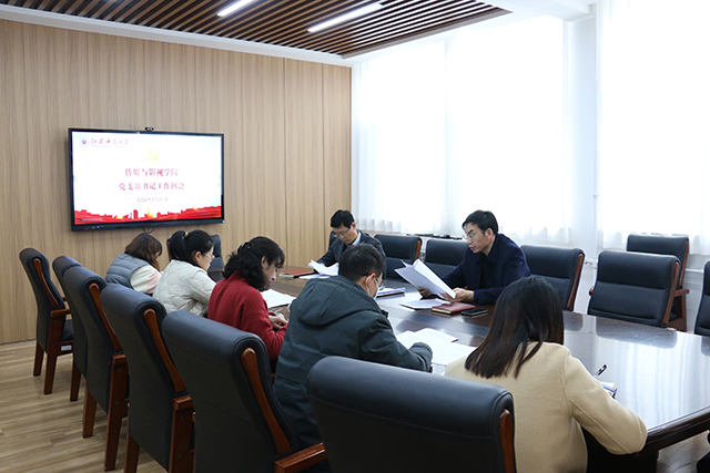 3月27日下午,传媒与影视学院党委在云龙校区6号楼318会议室召开新学期党支部书记工作例会,院党委书记赵永前、院党委副书记张存钊、学院全体党支部书记参加会议,张存钊主持会议。 会议首先集体学习《党史学习教育工作条例》,6位党支部书记结合本支部工作实际分别交流了学习心得。 根据校党委组织部的统一要求,会议对2023年度民主评议党员工作进行详细布置。 赵永前传达了学校党务例会精神,结合学院2024年度党政工作要点对学院全年党务工作进行部署安排,并围绕推进学院党支部建设工作提出三点意见:一是围绕中心、强化担当,强化党建工作和业务工作的相融相促,主动担当作为,突出学科专业特色,推动党建工作主动融入学院改革发展中心工作;二是注重规范、提质增效,严格落实“三会一课”制度,规范工作台账,抓牢理论学习,提高工作规范性和标准化;三是对标先进,强化创新,自觉向全国党建工作样板支部、全省党建工作样板支部学习看齐,优化支部品牌建设,积极开展“特色化”建设,按照“一支部一品牌”要求,积极谋划,创建支部工作特色品牌。