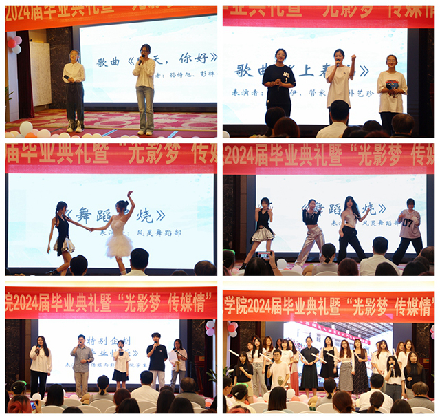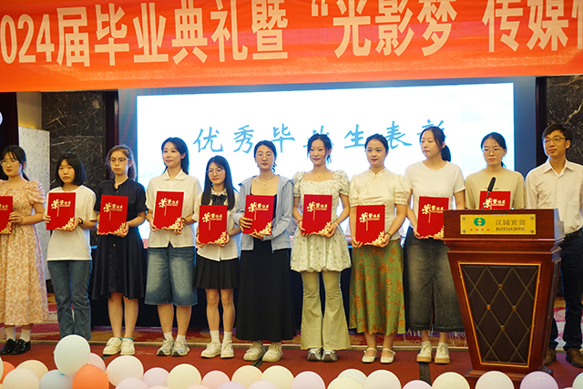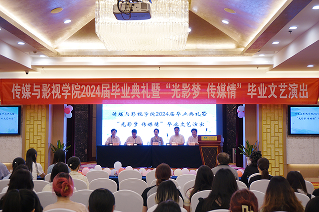 6月13日上午,传媒与影视学院2024届学生毕业典礼暨“光影梦 传媒情”毕业文艺汇演在校师资培训中心二楼学术报告厅举行。传媒与影视学院党委书记杜昀、院长孟宪浦、党委副书记张存钊、副院长李忠、副院长何靖,研究生导师代表、毕业班班主任、辅导员老师、2024届研究生和本科生毕业生代表、低年级研究生和本科生代表共计200余人参加活动,院党委副书记张存钊主持典礼。 上午9:40,毕业典礼正式开始,全体起立,奏唱国歌。 伴随着热烈掌声,传媒与影视学院院长孟宪浦致辞。他首先代表全体师生员工向圆满完成学业的毕业生表示最热情的祝贺。惜别之际,孟院长对毕业生们提出三点期望:一是厚植报国之心、做胸怀天下的传媒人,将个人奋斗融入到强国建设、民族复兴的时代洪流;二是砥砺进取之心、做勇立潮头的传媒人,持续学习创新,提升专业能力,顺应时代要求;三是修炼从容之心、做不惧困苦的传媒人,在困难中磨练心智,以乐观和坚韧面对人生的起伏坎坷。最后,孟院长期望毕业生能持续关注和支持学院发展,以实际行动彰显传媒人的荣光。 教师代表、广播电视学系王卿老师向毕业生致以临别赠言。面对未来的探索之路,她送给同学们三条锦囊妙计:首先,保持好奇心,勇于探索未知、不断学习新知;其次,拥抱变化,不惧未来的不确定性,开拓更广阔的人生舞台;再者,不忘初心,勇敢面对挑战与困难,坚持理想与追求。期待同学们怀揣美好记忆,用心书写属于自己的精彩篇章。 毕业研究生代表、2021级新闻传播学专业王路瑶向母校表达了深切的感激之情。她强调同窗情谊的重要性,感动于同伴间的相互扶持与激励。鼓舞大家以满怀希望的姿态启程,“思所从来、思所将往、方明所去”,用实际行动诠释青春的意义与价值。 毕业本科生代表、2020级广播电视编导专业张亚楠回望孜孜求学路。经历四年的努力求学,有良师益友相伴,谓之幸运;经历学习与实践的挑战,收获荣誉与成就,谓之成长;在追求梦想的路上不懈努力,谓之勇敢奔赴。无论面对何种人生路径,传媒人都将带着“崇德厚学、励志敏行”的校训一往无前。 低年级学生代表、2021级广播电视学专业李佳铃发言,称赞学长学姐们经历了从懵懂到成熟的蜕变,能够用敏锐的目光洞察时事,用温润的笔触书写青春。祝愿学长学姐们前程似锦,同时鼓励所有同学珍惜时光,在人生道路上笃行致远、博学不倦。 学生代表发言结束后,副院长何靖为优秀毕业研究生代表、优秀毕业本科生代表颁奖。 随后,院党委书记杜昀对考研升学、出国(境)读研深造以及考取博士的同学予以表彰。 典礼最后,院长孟宪浦为毕业研究生代表、毕业本科生代表授予学位证书。 典礼结束后,伴随着一段记录青春足迹与欢声笑语的毕业纪念视频,“光影梦传媒情”毕业文艺汇演正式开始。 《明天,你好》旋律悠扬,字句间是对过往岁月的温柔回望,是对前方未知旅程的深切期许;风灵舞蹈部带来《舞蹈串烧》,活力四射,舞出自信与热爱;春山可望、未来可期,一曲《上春山》将现场氛围推向高潮,掌声迭起;演出以传媒与影视学院学生会特别策划的歌曲串烧《毕业快乐》作结。 祝愿2024届毕业生怀揣梦想,勇敢前行,开创未来无限精彩!(一审:李坤,二审:张存钊,三审:杜昀)