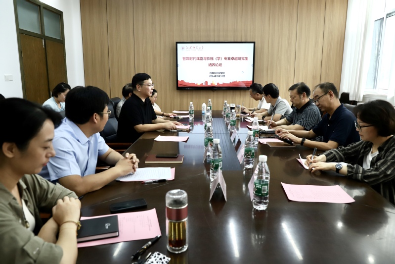 为适应智媒时代对人才的需求,进一步提高研究生培养质量,强化专硕培养与业界发展的联系,9月13日,传媒与影视学院在学院318、304会议室举办智媒时代戏剧与影视(学)专业卓越研究生培养论坛,探索智媒时代下戏剧与影视专业卓越研究生培养机制优化、培养模式创新与培养效能提升等教育教学改革问题。论坛由院长孟宪浦教授主持,艺术学学硕、戏剧与影视专硕指导教师参加了论坛。此次活动还特别邀请了徐州市文化产业集团有限公司董事长、党委书记杨森,徐州广播电视传媒集团副台长、高级编辑卞海峰,江苏省邳州市融媒体中心主任赵源,丰县融媒体中心主任编辑杨冰漠等业界专业硕士兼职导师共同参与。院长孟宪浦指出,在智媒时代背景下,戏剧与影视专业研究生所面临的新要求日益凸显,而学院在培育这类高素质人才方面肩负着重要的责任与使命。他表示,期望借助此次论坛的契机,能够汇聚各方智慧与力量,共同探索并构建出更加贴近时代脉搏、满足行业发展需求的研究生培养新模式。副院长李忠就研究生招生、培养以及学科建设情况进行了详细介绍。与会导师对卓越研究生的培养进行了深入的研讨。徐州市文化产业集团有限公司董事长、党委书记、戏剧与影视专硕兼职导师杨森聚焦当前文化产业与科技的迅猛发展,剖析了智媒时代戏剧与影视产业的发展动向和对专业人才的迫切需求,戏剧与影视产业在数字技术的深度结合,对从业者的专业素养和创新能力提出了更高的挑战。徐州广播电视传媒集团副台长、高级编辑、戏剧与影视专硕兼职导师卞海峰立足于传媒行业的实践前沿,对智媒时代下戏剧与影视专业人才的提出了具体的要求,他认为,未来的行业精英必须既拥有坚实的专业基础,又具备跨界融合的创新思维。江苏省邳州市融媒体中心主任赵源、丰县融媒体中心主任编辑杨冰漠等分别结合各自丰富的行业经验和专业洞察,为戏剧与影视专业研究生的培养提出宝贵的建议。与会专家学者还就如何结合智媒时代的特点,创新研究生培养模式,提高研究生的实践能力等议题进行了探讨和交流。大家认为,面对智媒时代的挑战和机遇,迫切需要更新教育理念,加强产学研深度融合,培养出适应业界发展、懂技术、懂艺术、高素质的复合型人才。与会导师对参加论坛的2024级艺术学、戏剧与影视专业研究生的学业和职业规划分别给出了具体的指导和建议。本次论坛的举办,不仅成功构建了学院与业界之间的沟通桥梁,还为戏剧与影视专业研究生的教育培养带来了新的活力与深刻思考。学院将坚持不懈地贯彻“卓越、创新、实践”的核心理念,致力于为研究生提供更加丰富的优质资源,帮助他们在智能媒体时代取得显著的成就与进步。(一审:赵悦,二审:李忠,三审:孟宪浦)