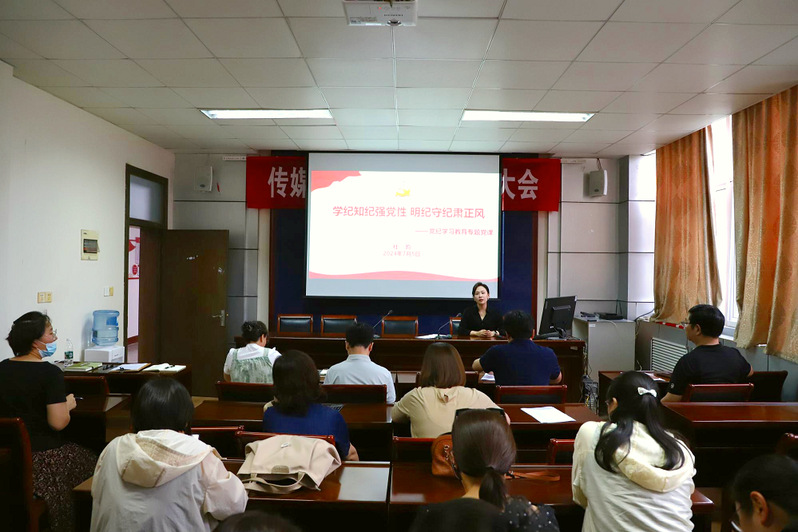为深入贯彻全面从严治党要求,强化学院教工党员的党性修养和纪律意识,7月5日下午,学院党委书记杜昀围绕新修订的《中国共产党纪律处分条例》(以下简称《条例》)以“学纪知纪强党性,明纪守纪肃正风”为题,为全体教工党员讲授党纪学习教育专题党课。杜昀紧密联系学院实际,结合自身学习思考,从深刻明晰《条例》修订的时代背景和逻辑内涵,准确把握《条例》的主旨要义抓实纪律建设,认真落实《条例》精神强党性肃正风三个方面进行阐述。她指出,《条例》是管党治党的重要基础性法规,广大教工党员要以《条例》为准绳,不断严明政治纪律和政治规矩,不断提升自身政治素养,敢于担当、积极作为,扎实推进党纪学习教育走深走实。党课中,结合警示教育案例,通过学院、专业、教职工个人发展等多层次风险点分析,强调党员教师必须牢记和遵守党内基本规范和要求,进一步强化纪律意识、加强自我约束、提高免疫能力。杜昀号召全体教工党员要“学纪、知纪、明纪、守纪”,不断加强党性修养,自觉接受监督,守好廉洁底线,要将条例的贯彻落实与学院实际工作紧密结合起来,以高度的责任感和使命感推动学院各项事业取得新成效、实现新突破。通过本次主题党课,与会教工党员对《条例》有了更加全面、深刻、准确的理解,纷纷表示要增强政治定力、纪律定力、道德定力、抵腐定力,始终保持忠诚、干净、担当的政治本色,为推动学院高质量发展贡献自己的力量。 (一审:周荃,二审:张存钊,三审:杜昀)