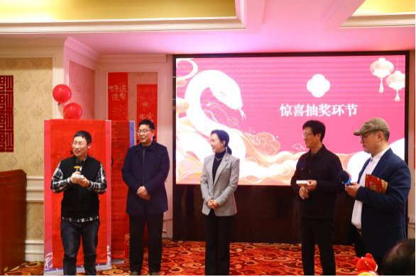 祥蛇昂首,瑞启新岁。1月11日下午,传媒与影视学院举办了一场以“顺颂时祺 秋绥冬禧”为主题的新春团拜会,四十余名全体教职工欢聚一堂,共度温馨时刻。